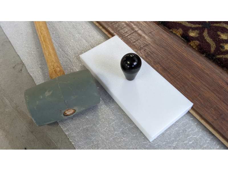 Designed for closing gaps in tongue & groove flooring. Made from durable, non-marking, high-density polyethylene. One end and side are grooved to protect flooring tongue. Plastic handle allows fast placement of Tapping Block.